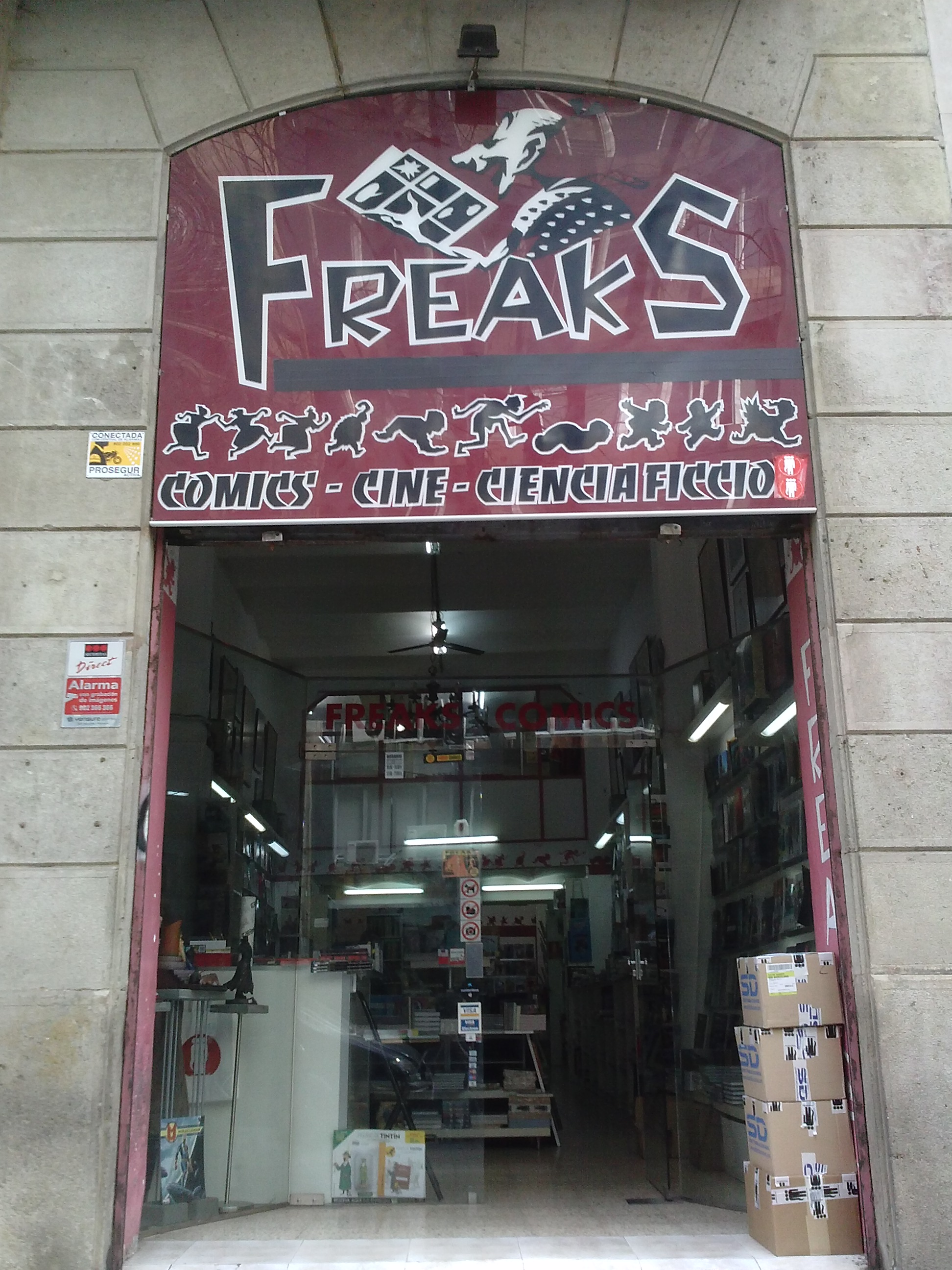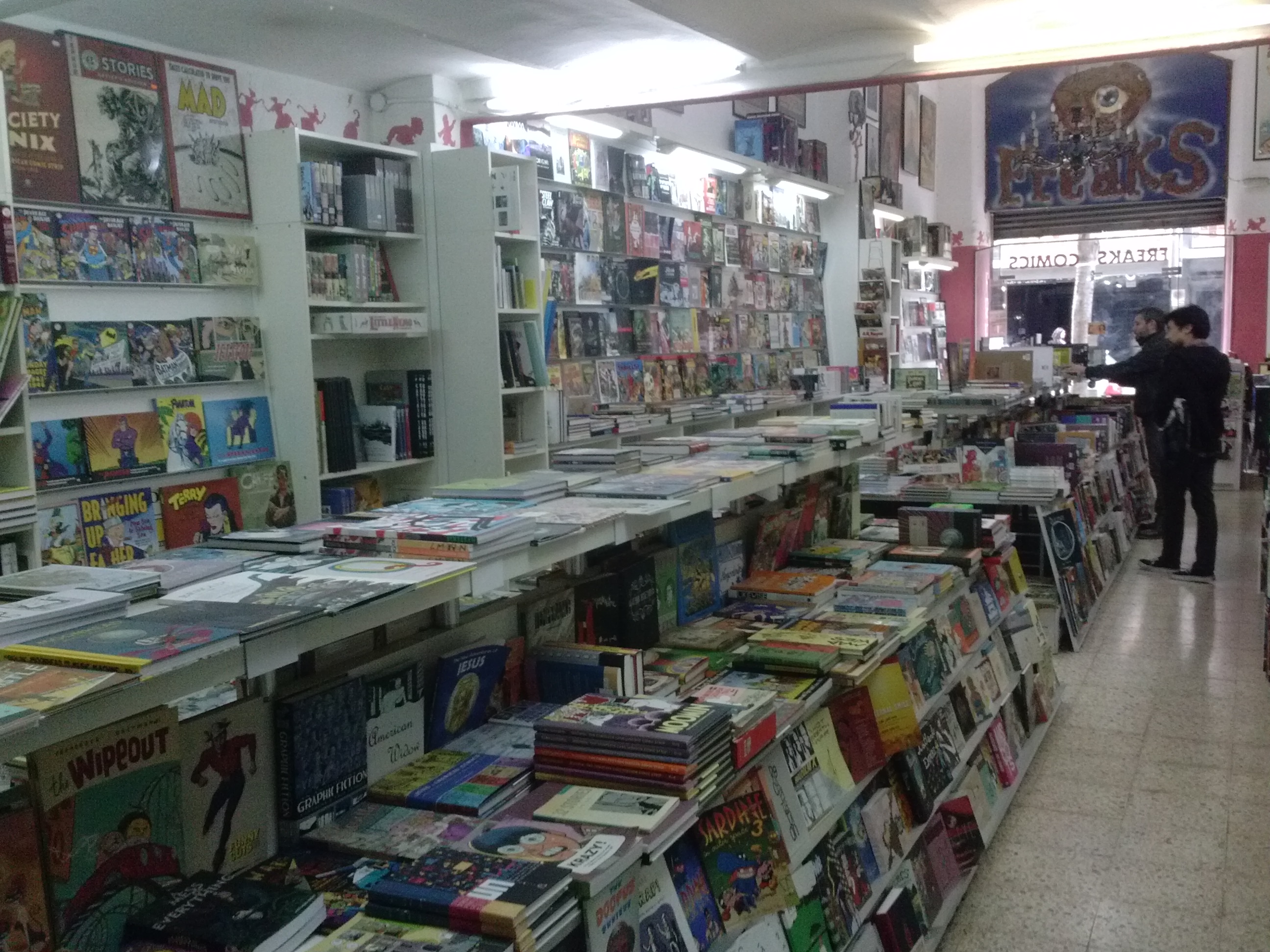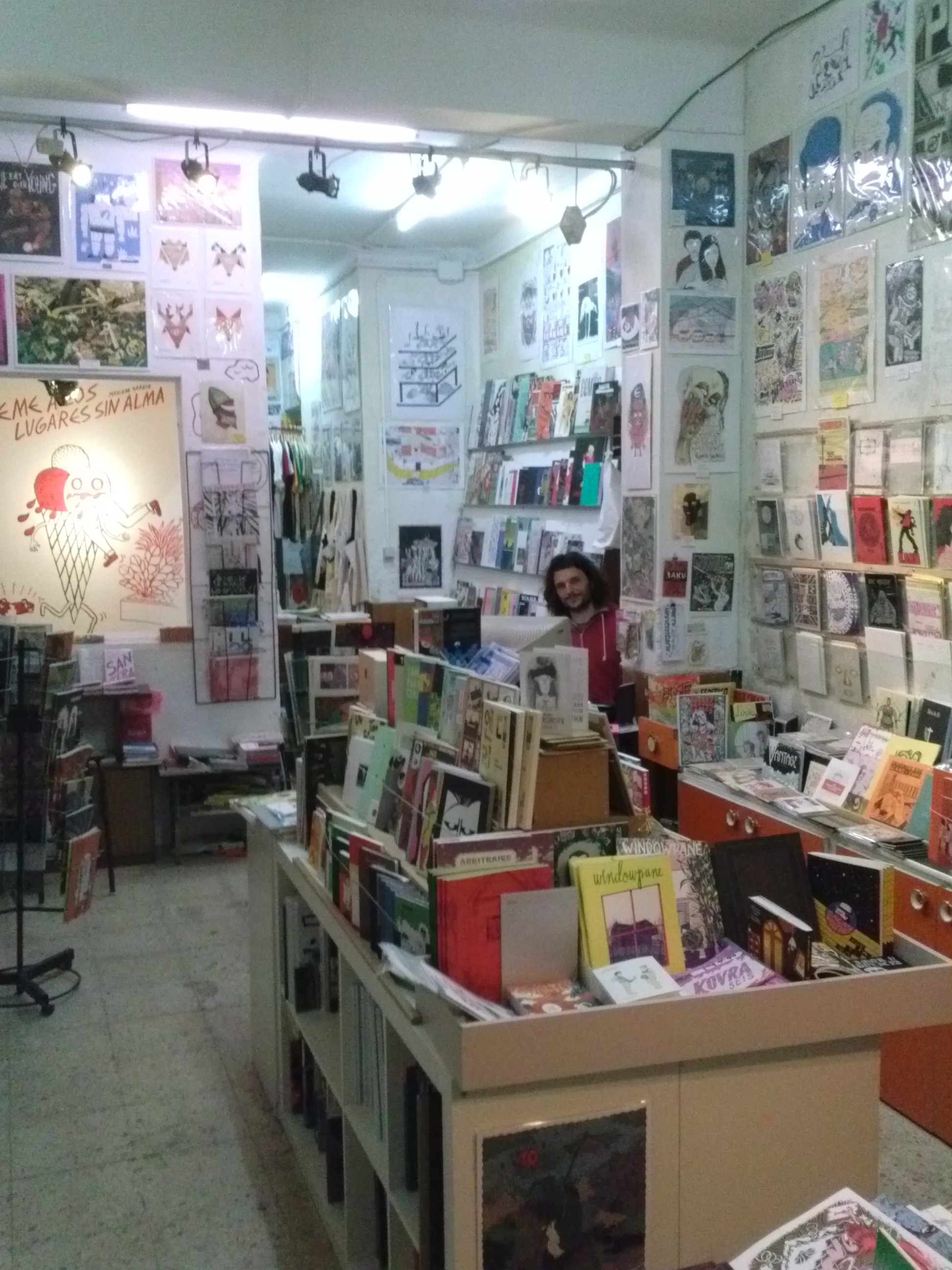 The Freaks comics shop is the midpoint in what is an impressive run of three Freaks media stores, the other two specializing in DVDs and art books. While this shop had a little bit of mainstream stuff (appropriately relegated to a tiny back room), the independent stuff is on full display here. Comprising two long center tables, the first focused on original Spanish books and Spanish-language reprints of foreign works. Regrettably, I didn’t have a whole lot of time to take notes, but I did have enough time to drool over these gorgeous Prison Pit reprints. The second table had an impressive selection of non-Spanish indie stuff from all over—Kuš, Drawn and Quarterly, First Second, Fantagraphics, No Brow, etc.—so a must stop for anyone, especially you.